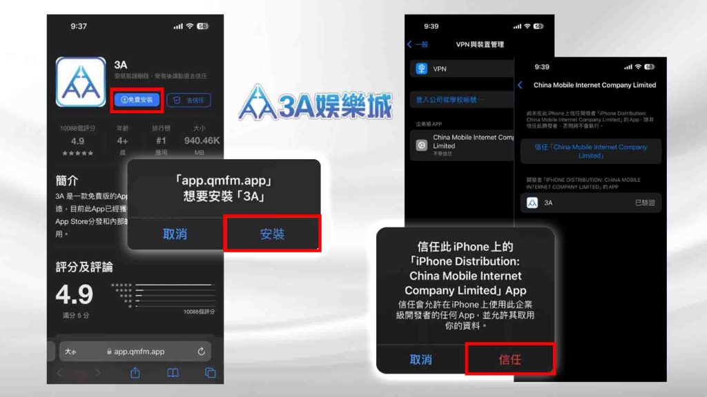 第二個重點,Android 跟 iOS 的流程不太一樣。Android 基本上下載後開啟安裝即可;iOS 則會多一個信任設定的步驟,照畫面指示做就好,不用緊張。